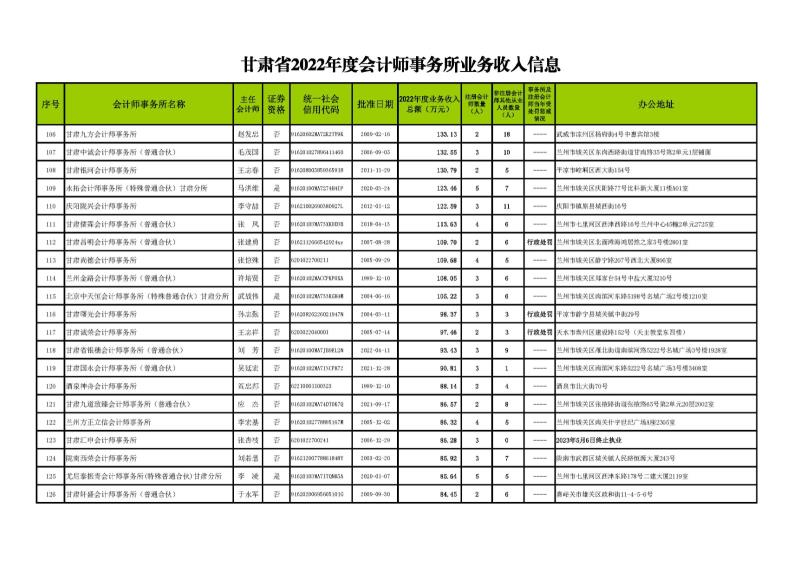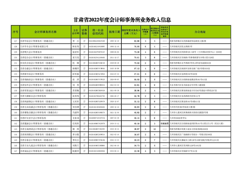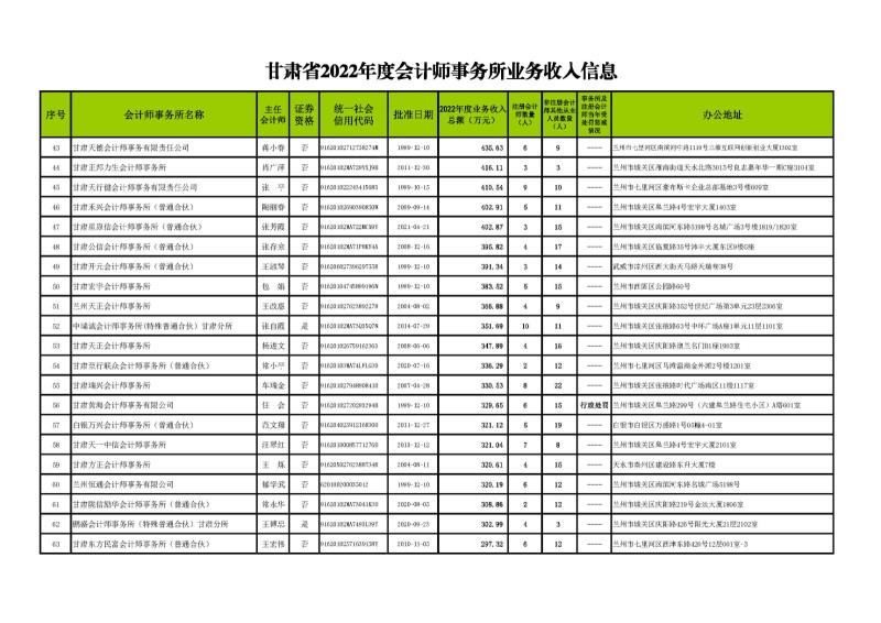 【甘会协[2023]49号】甘肃省注册会计师协会关于发布《甘肃省2022年度会计师事务所业务收入信息》的通知
